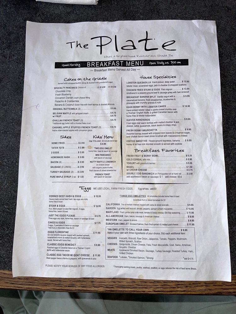 The Plate is a family-owned diner in Milford, CT, offering a wide selection of sandwiches, breakfast, and brunch options. This casual eatery provides wheelchair access, vegan and vegetarian choices, and even allows dogs on the outdoor seating area. With a full bar, free Wi-Fi, and TV, it's a great spot for groups, kids, or a solo meal. The menu boasts delicious options like the original Buttermilk Short Stack and Lobster Quesadilla. Customers rave about the generous portions and friendly service. Despite some suggestions for a renovation and improved ambiance, The Plate continues to impress with their fresh, flavorful dishes. Whether you're stopping by for breakfast, brunch, or lunch, this spot is a must-visit for a memorable dining experience.